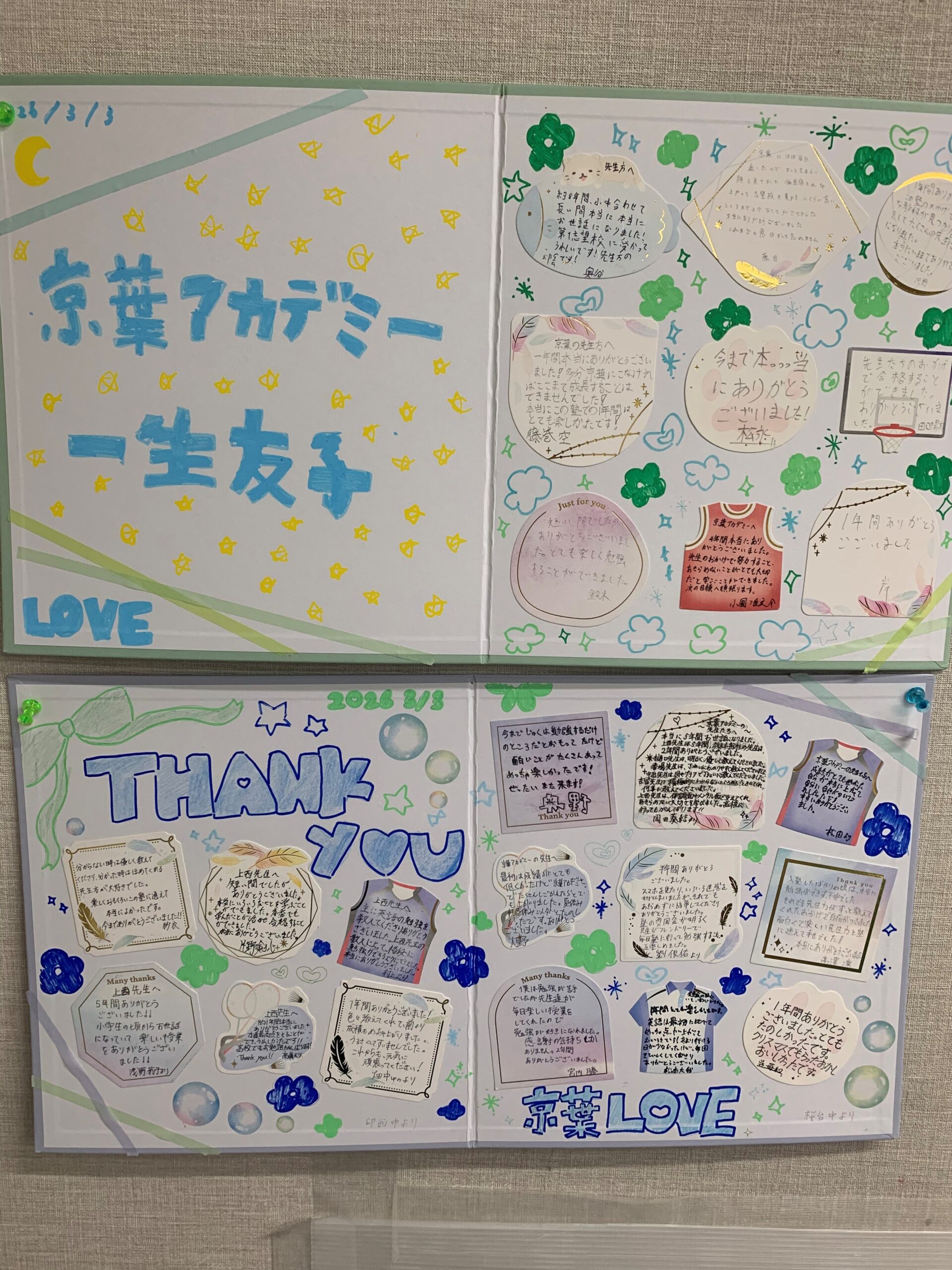学習の結果として試験の結果はありましたが、そこには現れない生徒の成長を感じることができ、講師一同嬉しく思っています。また、いただいた色紙は教室内に飾っており、講師だけでなく在校生の励みにもなっているように思います。