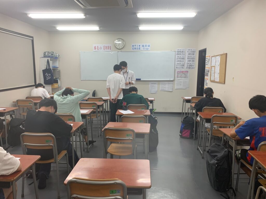 画像は夏期ゼミでテストを受けている生徒たちです。