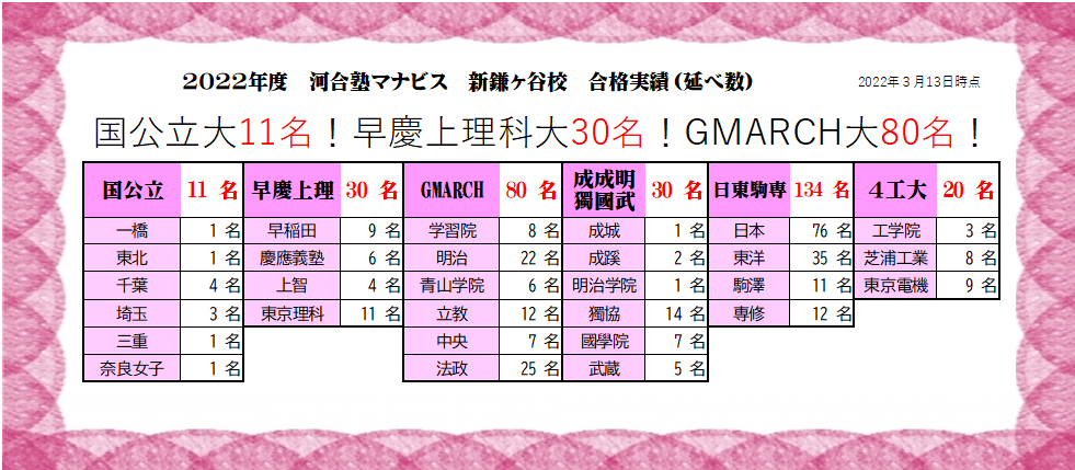 【合格実績】国公立11名、早慶上理30名、GMARCH 80名など≪2022年春大学受験決定版≫
